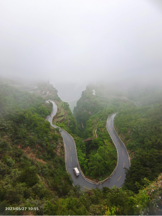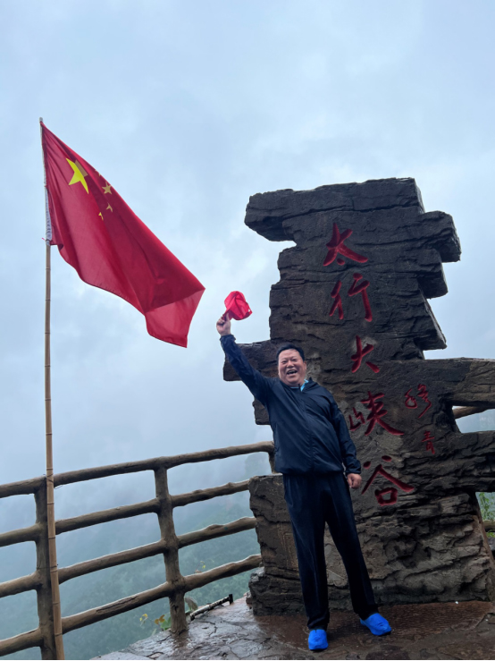 第二天游覽太行大峽谷風景。雨中的太行山淫雨霏霏,云霧裊裊,又是另一番浪漫與壯觀。全體佳程人秉著不服輸勇于挑戰(zhàn)的精神,成功登頂: